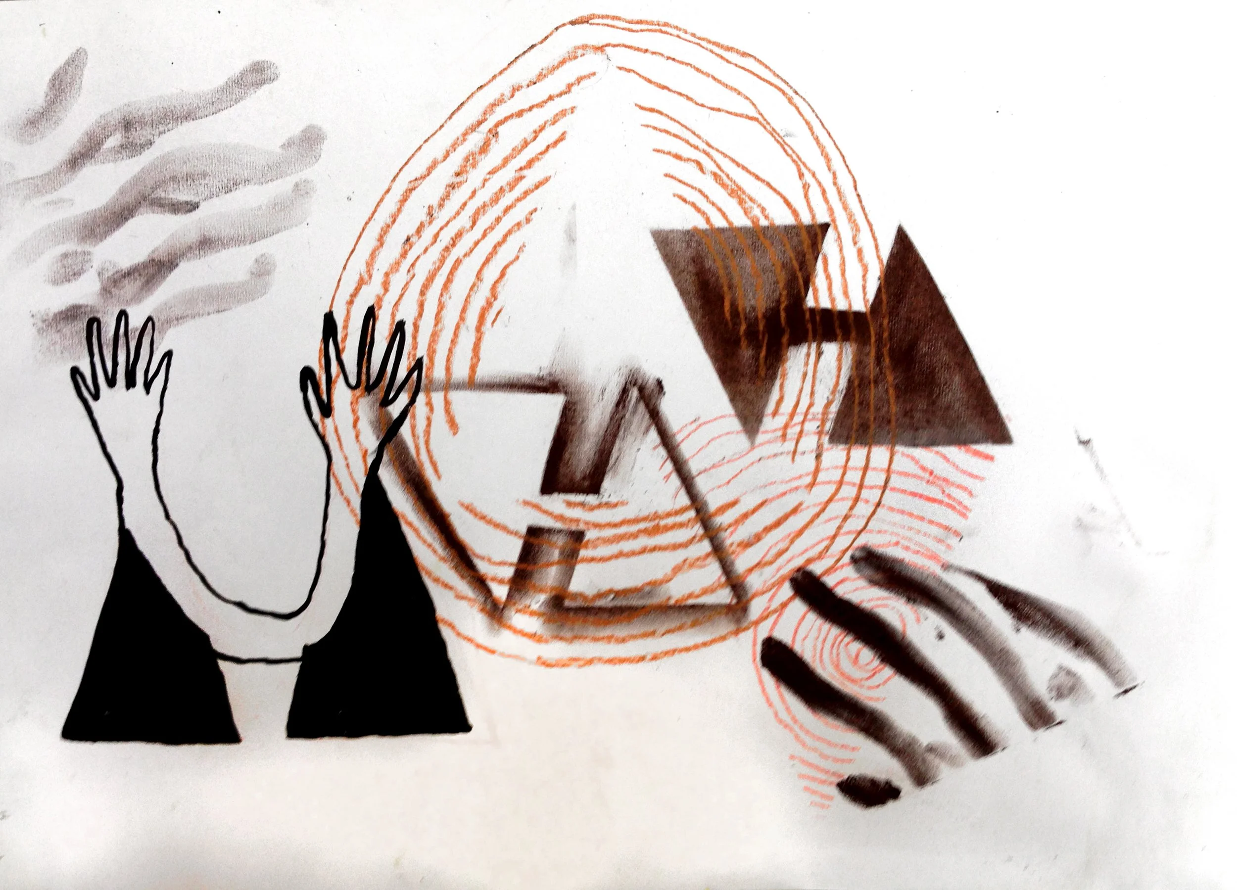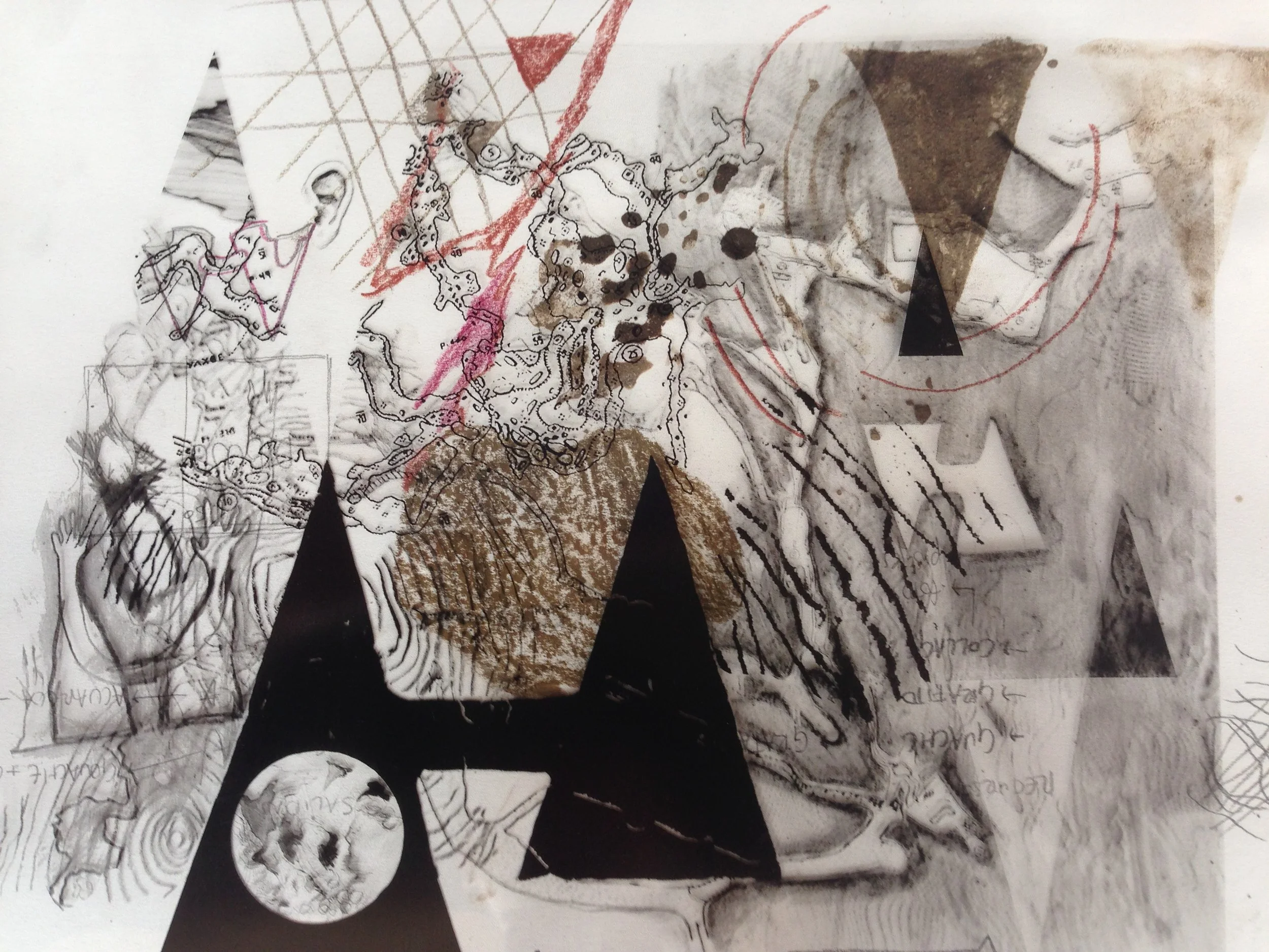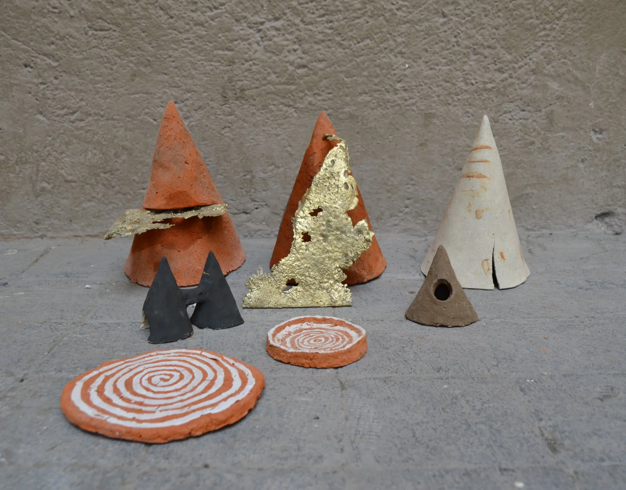 Adobe sancochado, cerámica, latón, técnicas mixtas, fotografía digital, collage.